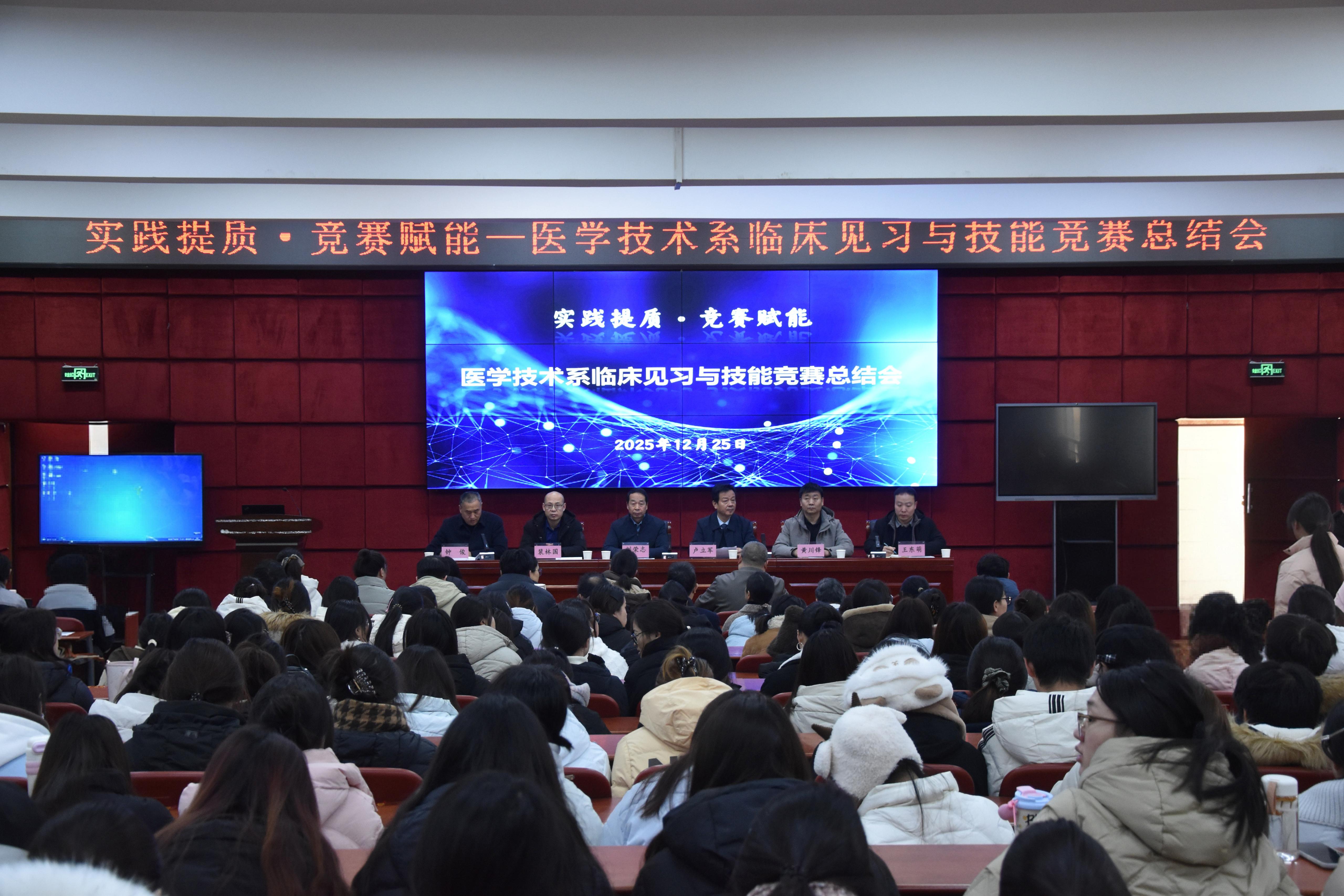 12月25日,医学技术系临床见习与技能大赛总结会在仲景西区图书馆报告厅召开。学校副校长刘荣志、三附院党总支书记卢立军出席,相关部门负责同志及医学技术系师生代表参加,会议由医学技术系党总支书记钟俊主持。