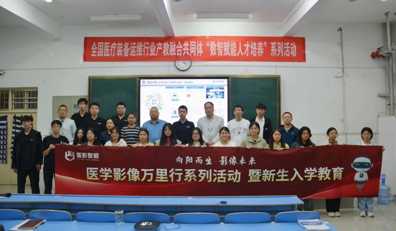 9月17日,南阳医专医学技术系联合山东医影智能科技有限公司,举办全国医疗装备运维行业产教融合共同体“数智赋能人才培养”专题活动。活动以“向阳而生 影像未来——医影智能万里行”为主题,为影像专业师生搭建了产业前沿与教学实践深度融合的交流平台。 医学技术系副主任崔军胜主持活动并致欢迎词。