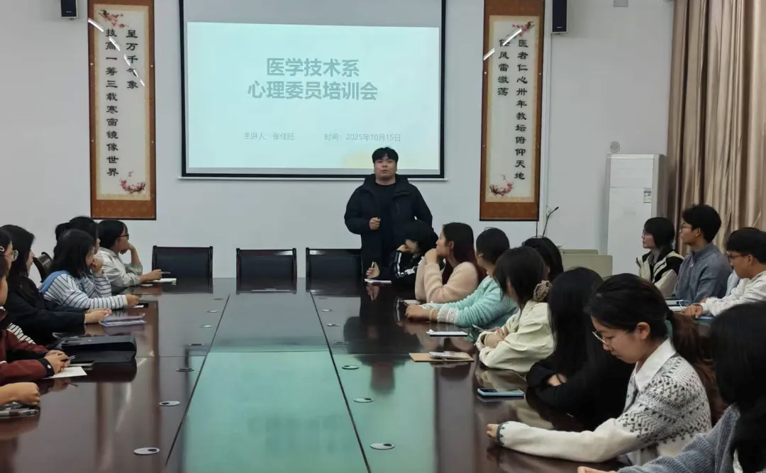 为进一步提升心理委员的朋辈帮扶专业能力,精准赋能其识别同学心理危机信号、掌握科学应对方法,切实筑牢校园心理健康安全防线。10月15日,医学技术系特此开展“为心赋能,共同成长”心理委员培训会。本次培训由我系心理专干张佳旺主讲,全体心理委员参加。