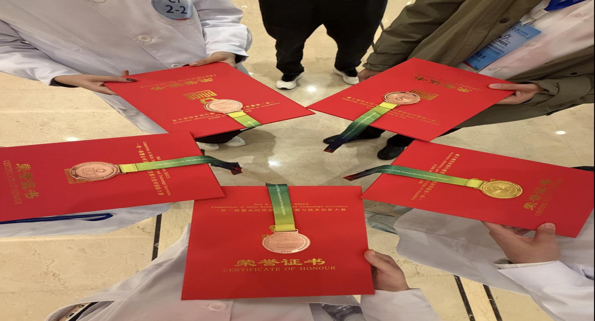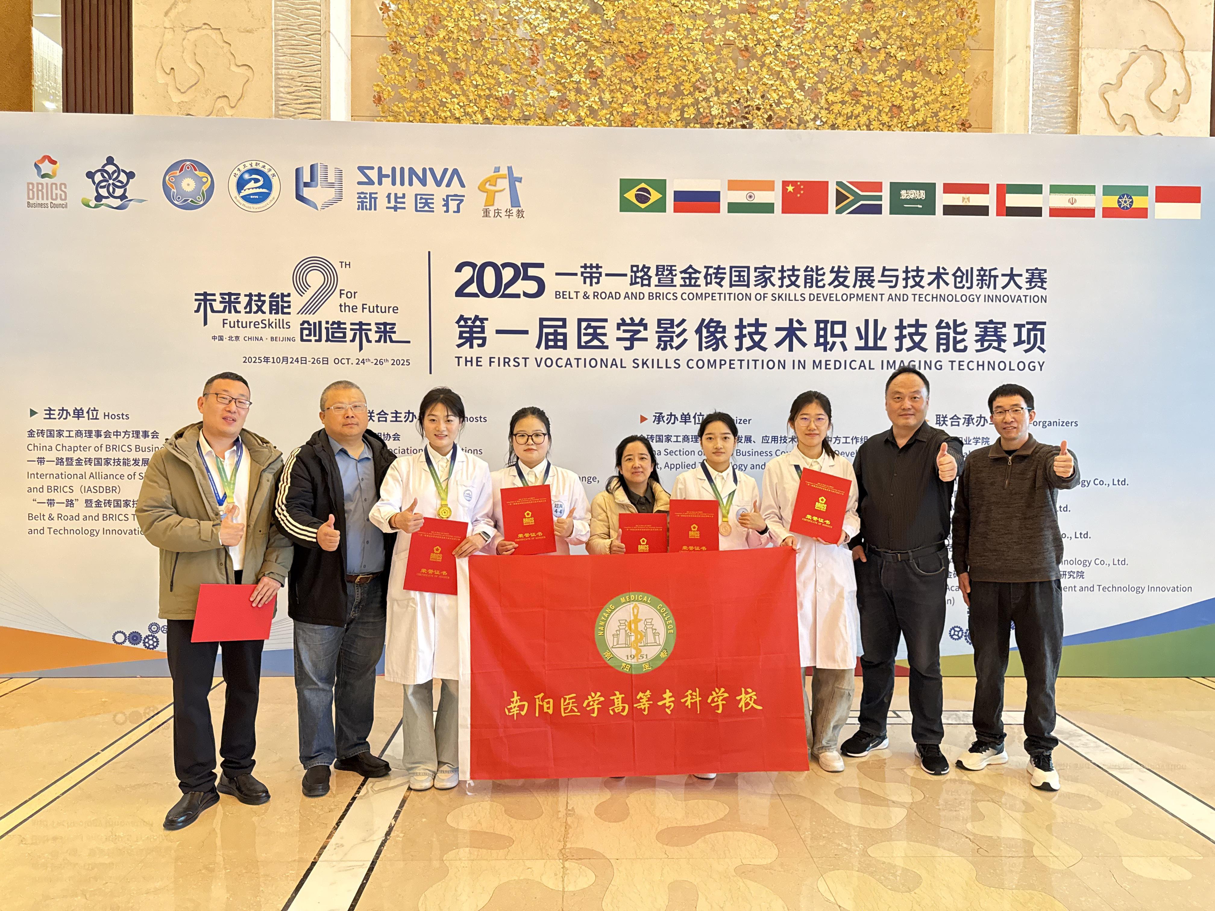 10月23日至26日,2025“一带一路”暨金砖国家技能发展与技术创新大赛首届医学影像技术职业技能赛项在北京卫生职业学院举办。我校医学技术系9名师生参赛,获得DR检查技术赛项一等奖,CT检查技术、超声检查技术、图像后处理赛项三等奖,教师说课比赛三等奖;学校获“最佳组织奖”,一名教师获优秀指导教师奖。