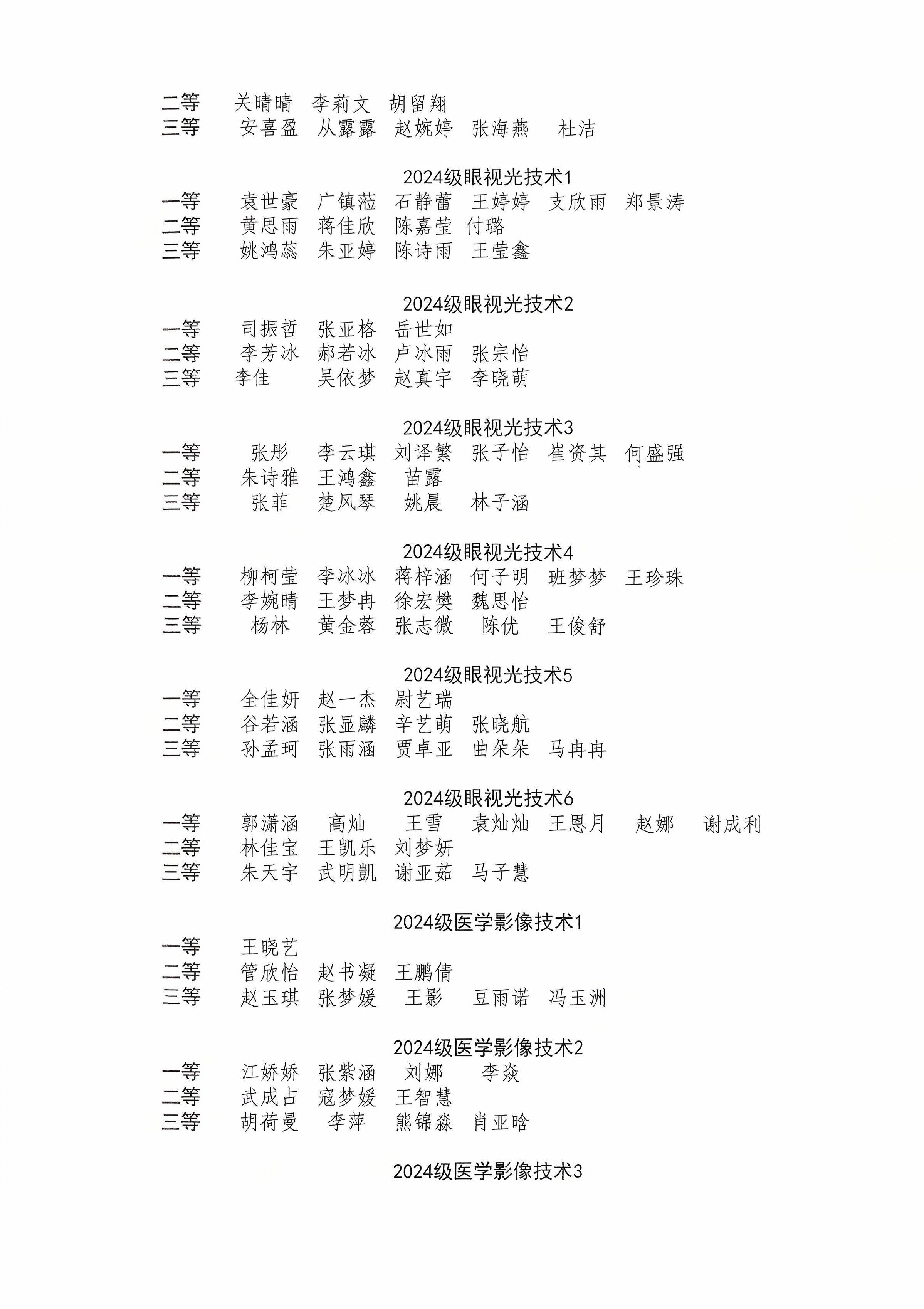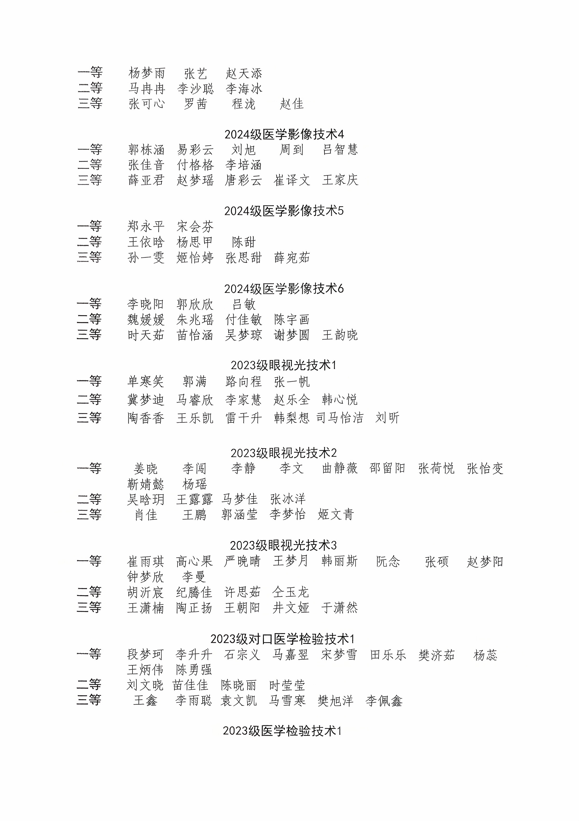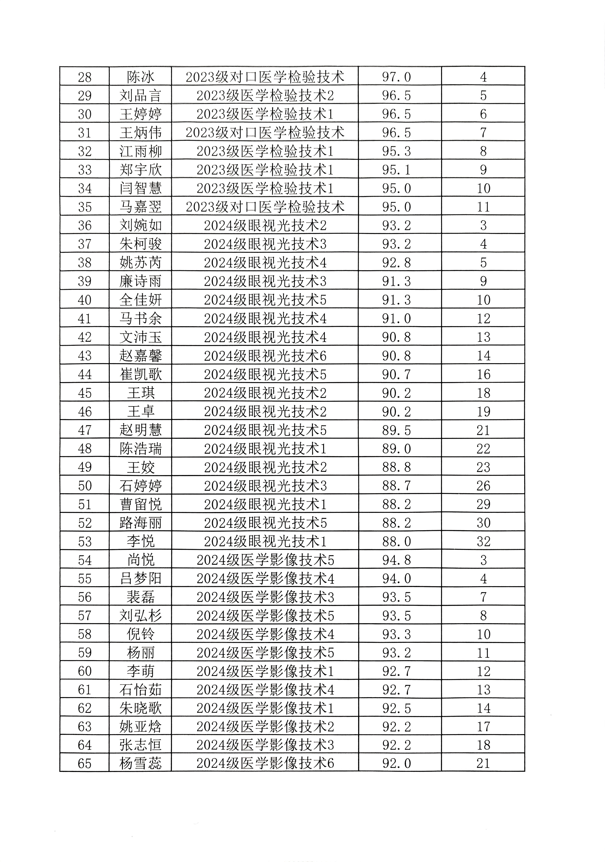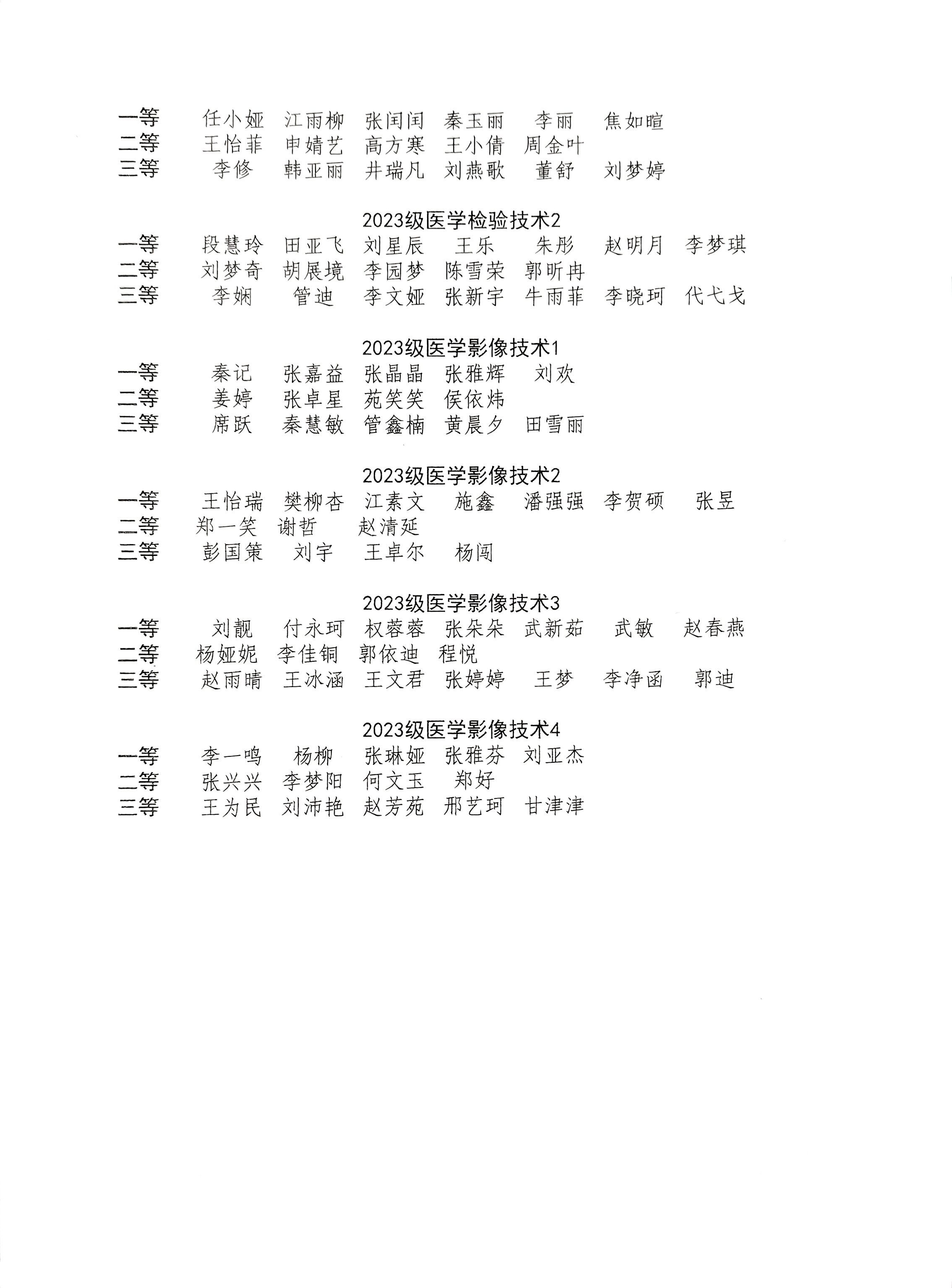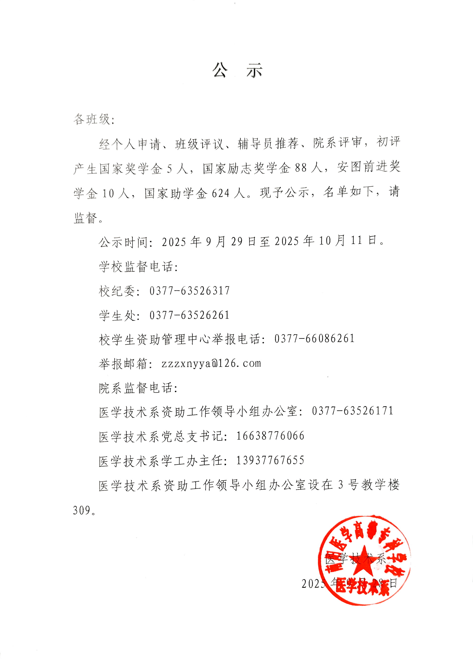医学技术系2025年各类奖助学金初评结果