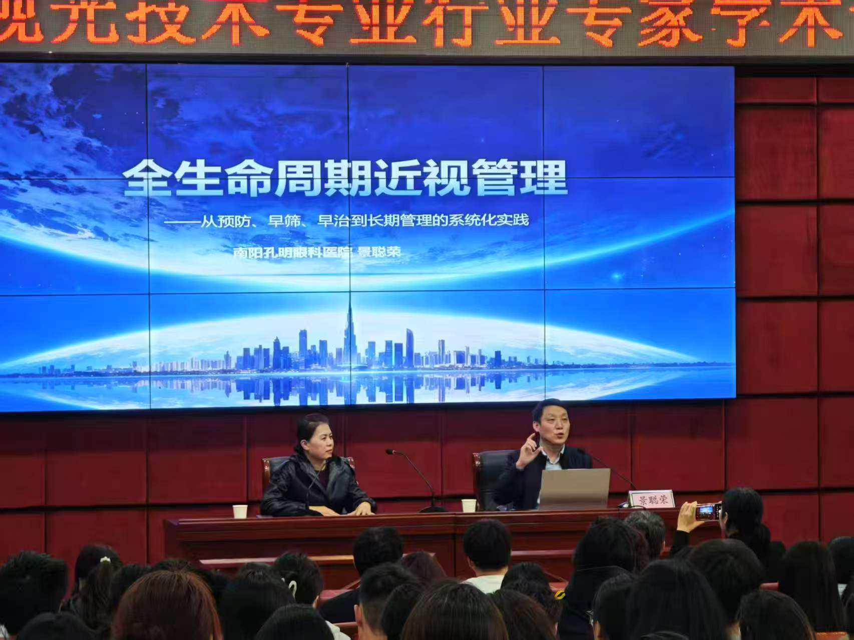 为深入推进产教融合,拓宽学生专业视野,4月1日与4月8日下午,南阳孔明眼科医院院长景聪荣教授应邀莅临我校,在图书馆学术报...[详情]