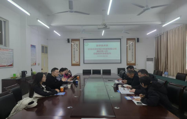 3月23日,北京好视力科技有限公司魏经理一行4人到访医学技术系,就眼视光技术专业学生实习实训、人才输送及校企合作等事宜开展合作洽谈。医学技术系党总支书记钟俊、副书记雷呈、眼视光技术专业教研室主任耿若君出席座谈会。会议由学工办主任刘良主持。